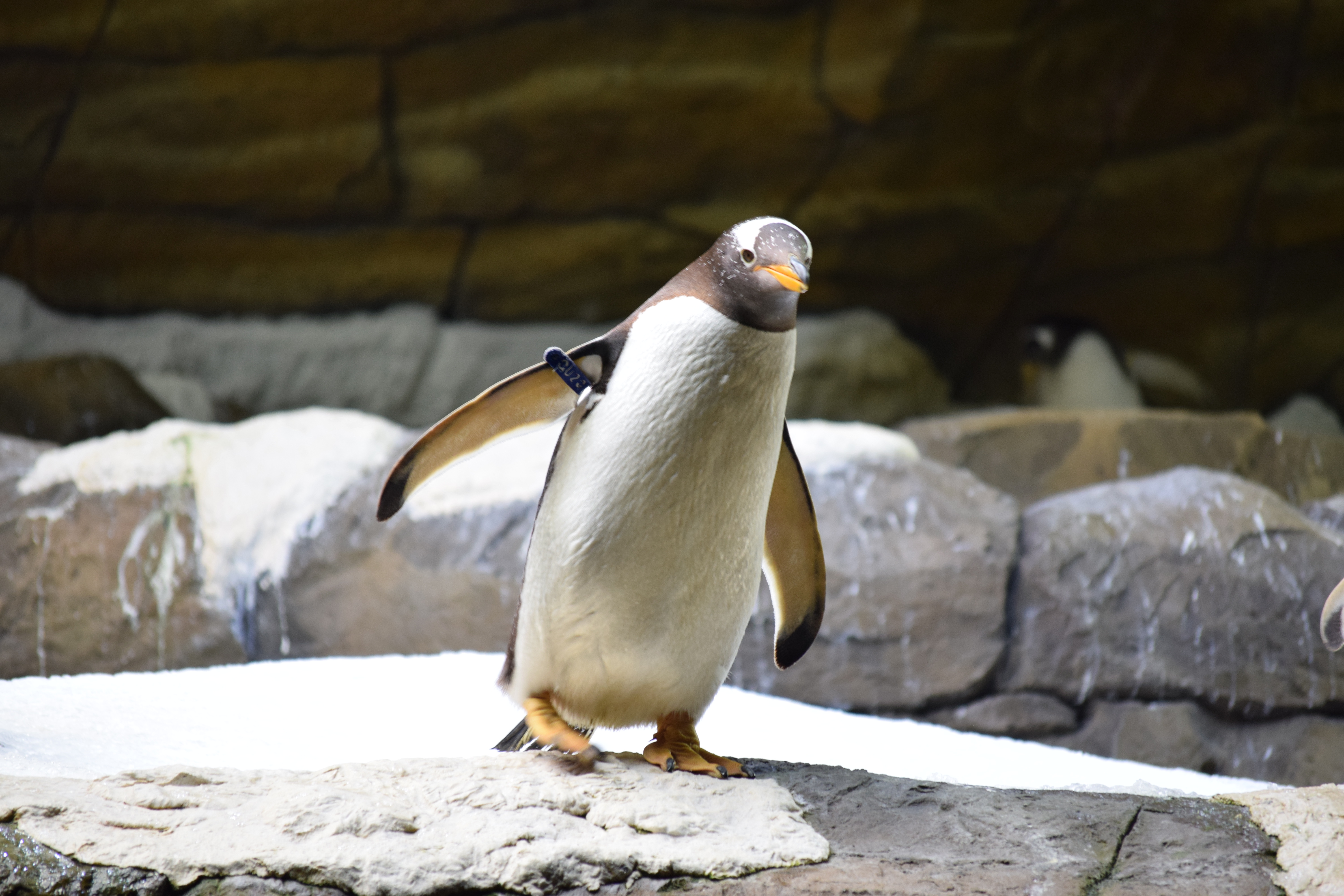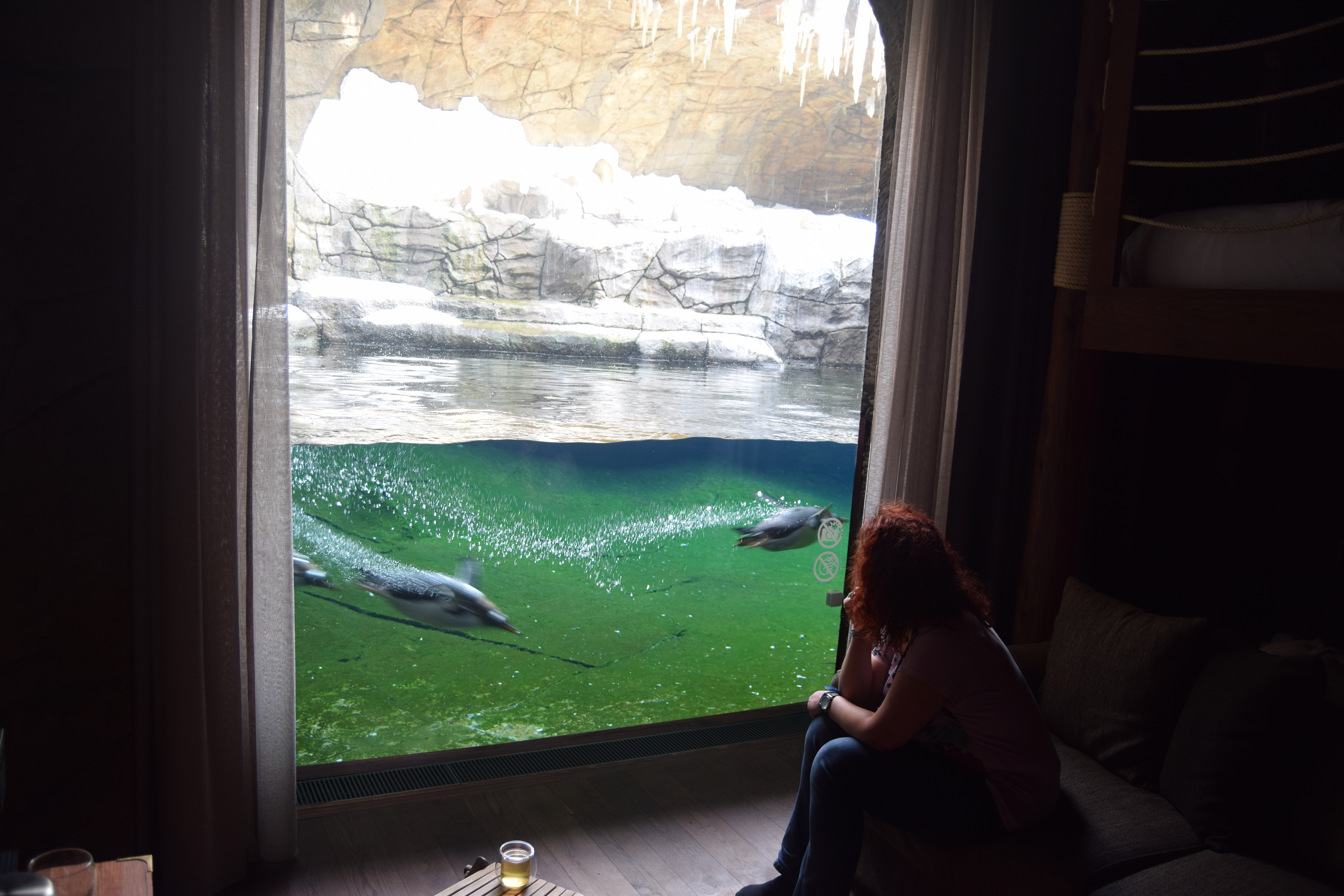 Since 2019 Pairi Daiza has the Land of the Cold where you can watch the penguins from your hotel room. The Gentoo penguins are together with Rockhoppers and King penguins. Outside there are African penguins and there is a skeleton of a Magellanic penguin as well.