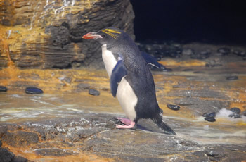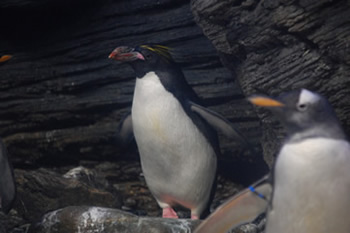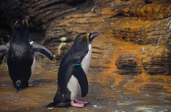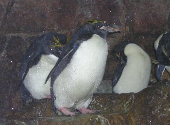 Macaroni penguins live together with King penguins and Gentoo penguins in a conditioned room. Humboldt penguins have an outside cage, but this will be moved to Planckendeal after the first quartile of 2013.