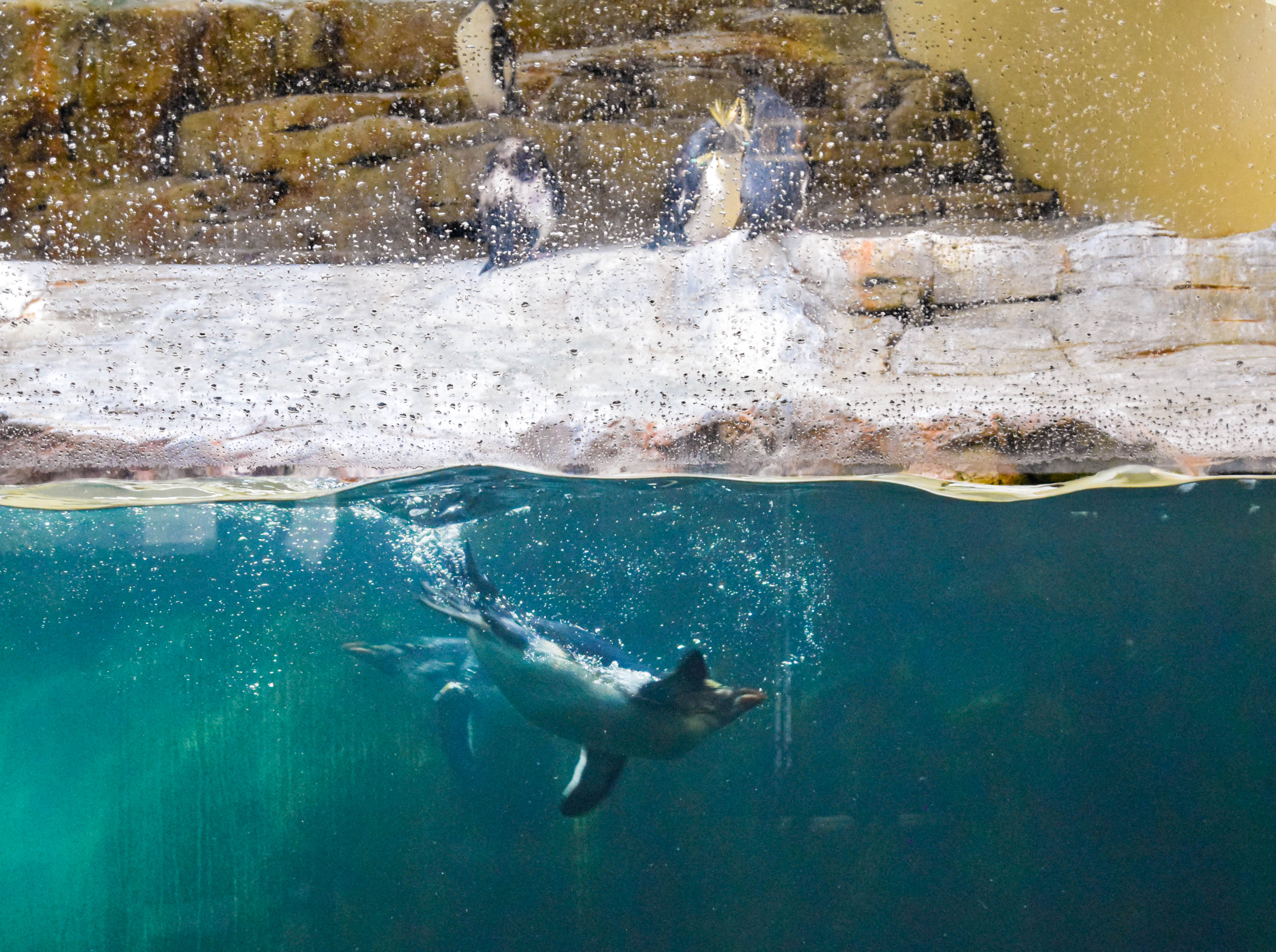 Since 2019 Pairi Daiza has the Land of the Cold where you can watch the penguins from your hotel room. The Rockhoppers are together with King and Gentoo penguins. Outside there are African penguins and there is a skeleton of a Magellanic penguin as well.