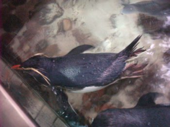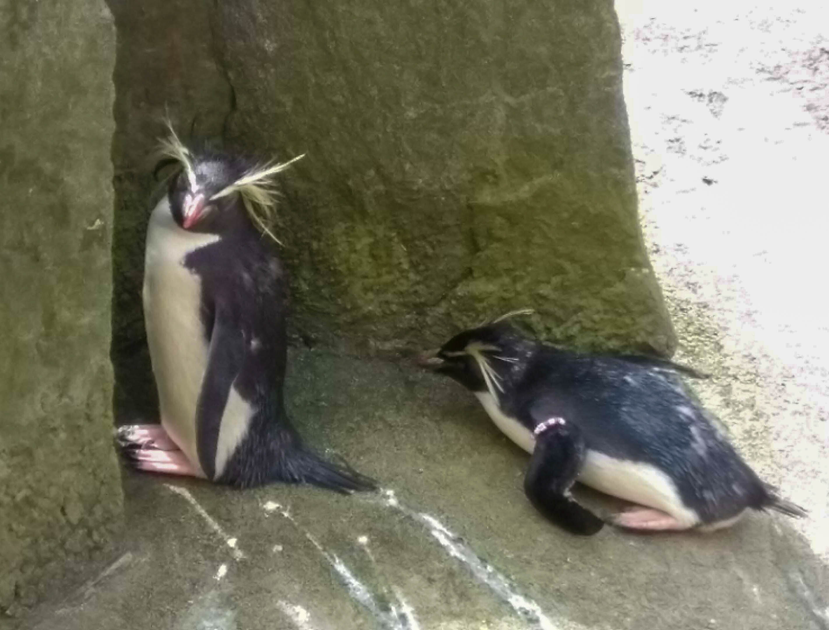 Tiergarten Schönbrunn, the Rockhoppers are together with King penguins and there area also Humboldts. These Rockhoppers are of the Northern (long-tufted) type (Eudyptes chrysocome moseleyi) just like the ones in Edinburgh.