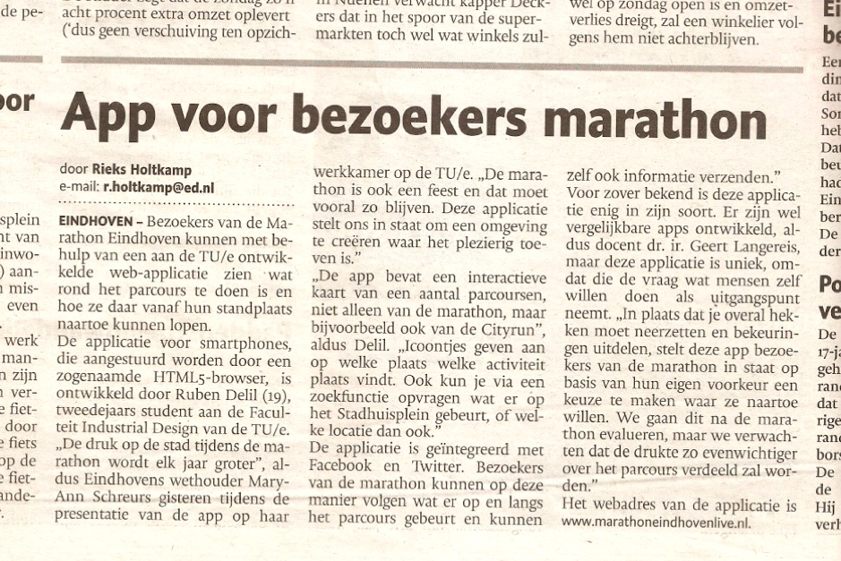 Web applciation for the Eindhoven Marathon, in: Eindhovens Dagblad, 11 October 2012 jpg