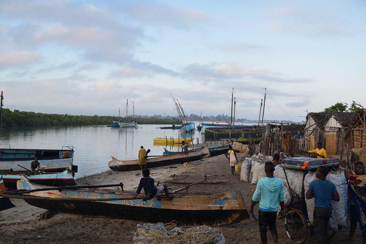 The pictures are: view from St. Marie, a baobab tree while driving to Ifaty, sifaka's, the common brown lemur, Piscine Naturelle in Isalo National Parc and a whale tale close to St. Marie. Below is the harbour of Morondava in July 2016. See also the page with pictures.