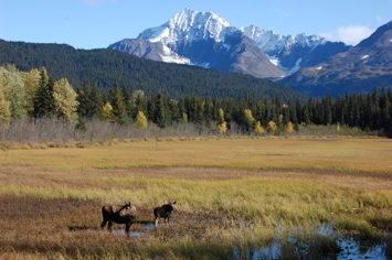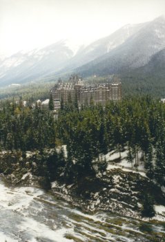 The Banff National Park in Canada is great for hiking. You can swim in the hot springs and go up the Sulphur mountain with a gondola. It is also a good starting point to visit Lake Louise. One can see bears and elks. The following picture is of the Banff Springs Hotel.