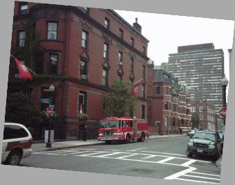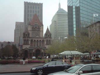 In the left picture, one can see the old and the new Boston next to each other: in the middle the Trinity Church, and on the right-hand side the John Hancock tower. The right-hand picture is taken on Fairfield street.